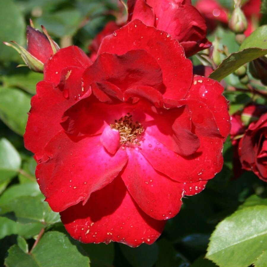 Роза канадская парковая Чамплейн - это великолепное растение с красивыми красными цветками, которые украсят любой сад. Ее ствол один, а высота достигает до 100 см, что делает ее идеальным выбором для оформления клумб и рабаток. Листья растения имеют интересную форму и яркий зеленый оттенок, что придает ему особый шарм.