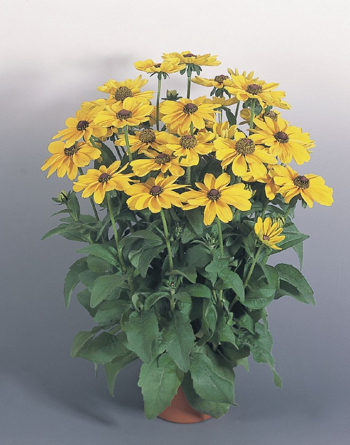 Саженцы рудбекии волосистой Тото Голд (Toto Gold) можно выращивать в открытом грунте или контейнерах, что делает их невероятно популярными. Компактное растение высотой до 35 сантиметров с многочисленными цветами станет настоящим украшением садовой композиции, патио, балкона или подоконника. Каждое соцветие состоит из круглой коричневой серединки и ярко-желтых лепестков. Цветение начинается в июне и длится до конца сентября. Рудбекия неприхотлива к условиям выращивания, поэтому ее часто используют для заполнения пустующих участков сада. Цветущие кусты источают приятный аромат.