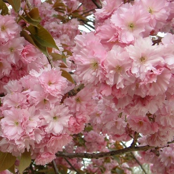 Саженцы Сакуры мелкопильчатой Канзан на штамбе (Kanzan) в дикой природе встречается в форме кустарника с густой кроной. Высота может быть до десяти метров, а диаметр, состоящий из плотных побегов – 5-8 метров. Его можно отнести к ценным экземплярам. Ведь из-за особенности ухода и селекции кустарник вырастает только до 250 сантиметров. Ещё к плюсам можно отнести то, что ствол не большой, а значит, растение полностью покрывается листвой и цветами.