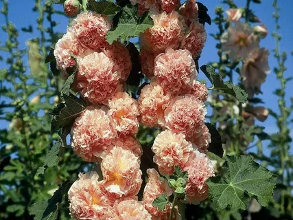 Шток-роза лососево-розовая - это изысканное растение с прекрасными цветками, окрашенными в нежные оттенки лососево-розового. Ее ствол прочный и прямой, достигает высоты до 200 см, что делает ее идеальным украшением для вашего сада или огорода. Листья этого растения имеют элегантную форму и насыщенный зеленый цвет, что придает ему особый шарм.