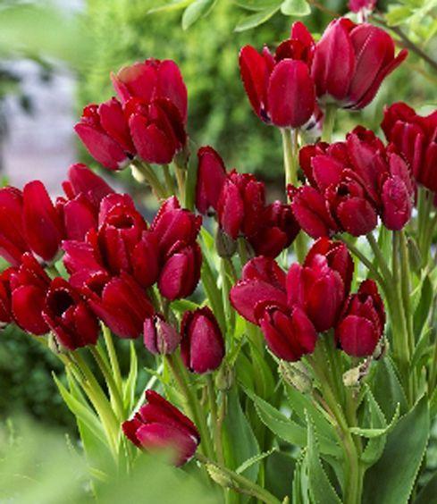 Луковицы тюльпана Уоллфлауэр (Wallflower) – купите их и будет у вас оригинальное украшение участка. Это сорт многоцветкового вида. Цветет он в мае 4-6 бутонами темно-красного цвета расположенными на одном стебле. Этот необычный цветок порадует как в клумбе, так и в букете. Может сочетаться с разными другими растениями, цветущими или вегетирующими в этот же майский период. Для растений этой группы важно выкапывать луковицы их после того, как пожелтеют листья. А посадки их осуществляют осенью. Почва должна быть нейтральной. Кислые заранее известкуют. Любят тюльпаны и влагу, но без застаивания воды.