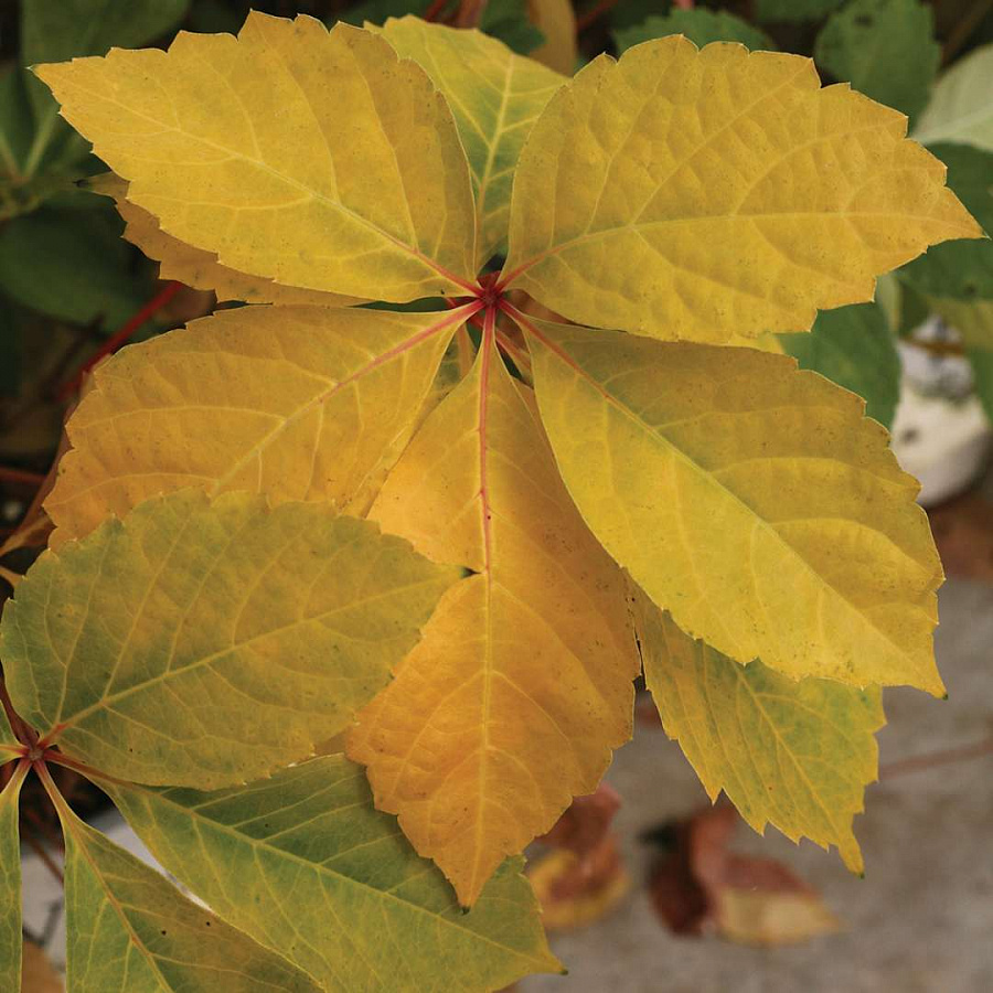 Саженцы Винограда девичьего пятилисточкового Еллоу Уолл (Yellow Wall) осенью «озолотят» ваше подворье ярко-жёлтым окрасом листьев. Устойчив к зиме, а в жаркую погоду любит умеренный полив. Растёт быстро, достигая 14м в длину. Чередуя Yellow Wall с другими сортами, к осени можно получить потрясающую палитру красок. Как любая лиана, требует хорошей опоры (пергола, беседка, стена) для стремительного роста побегов. Цветёт в конце мая малозаметными белыми цветками. Тёмно-синие плоды можно получить уже в сентябре первого года, если высадить сразу крупномер Yellow Wall.