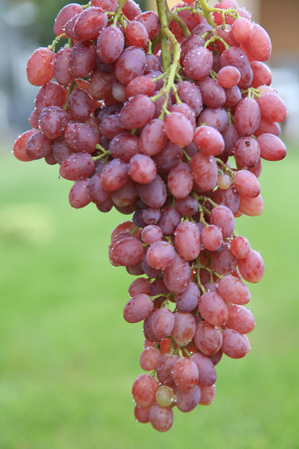 Семена и саженцы винограда плодового Кишмиш лучистый пользуются популярностью среди садоводов из-за короткого срока созревания и большого объема собираемого урожая. Кусты сильнорослые и на них вырастают грозди ягод розового и бордового оттенков. Одна виноградина достигает веса в 4 грамма, обладает плотной и сочной мякотью, без косточек, сладкая. Грозди достигают в длину 40 см и весят 600 граммов и больше. Благодаря своим особенностям такой виноград долго храниться и отлично подходит для транспортировки. Высаживать виноград нужно на хорошо освещенном участке сада.