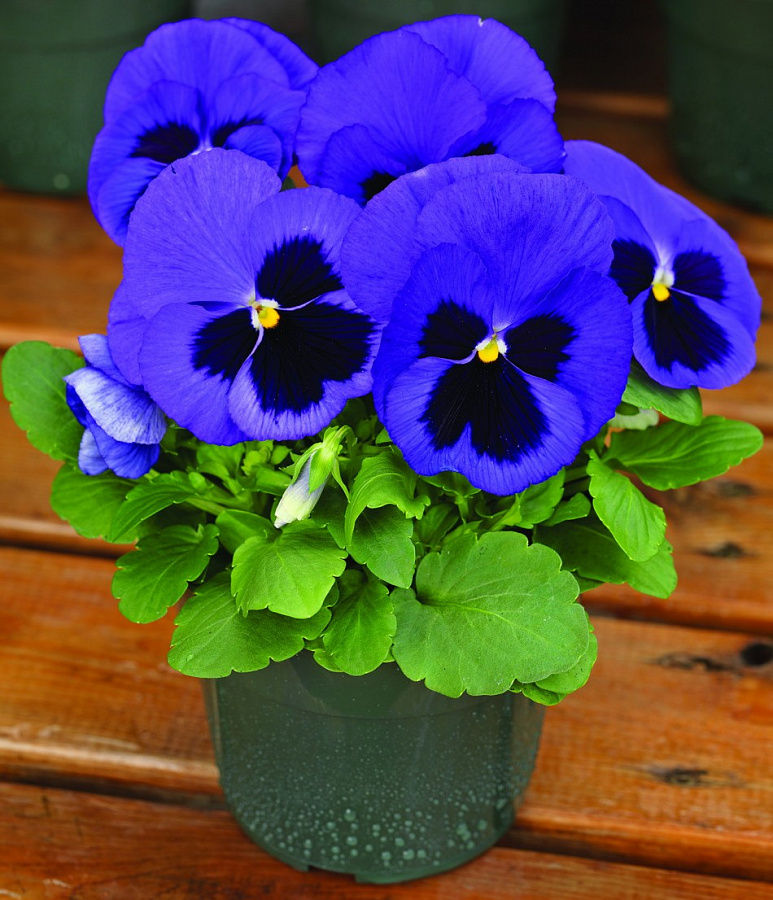 Виола крупноцветковая "Маммот Блу-Ти-Фул" - это настоящее чудо природы, которое поразит вас своей красотой и изяществом. Это растение отличается высокими декоративными качествами и неповторимым черно-синим оттенком цветков, размер которых достигает 7-9 см. Высота растения составляет 15-20 см, что делает его идеальным выбором для групповых посадок в солнечных и полутенистых местах.